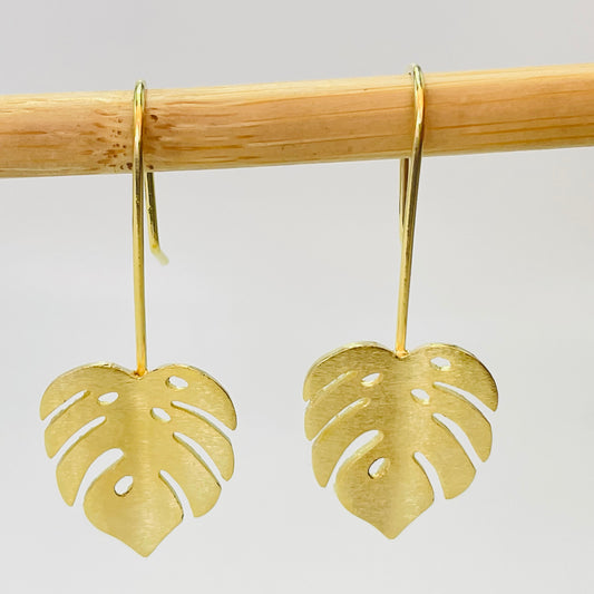 XO481 Aro Hoja Monstera 20 x 16 mm Espesor 1.2 mm con Gancho Largo Total 42 mm Aro Baño Oro