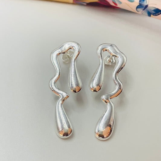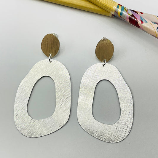 XP489 Aro Argolla Tipo Orgánica con 3 Palitos Diá. 15 mm Largo Total 28 mm Espesor 2 mm Aro Baño Plata