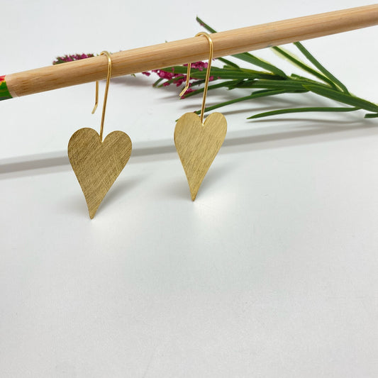XO435 Aro Colgante gancho Corazón Lijado 30x20 mm Largo Total 50 mm Aro Baño Oro