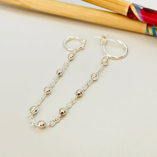 XP283 Aro argollita y cadena con perlas argolla 12 mm x 9 cm largo perla 2 mm Aro Baño Plata