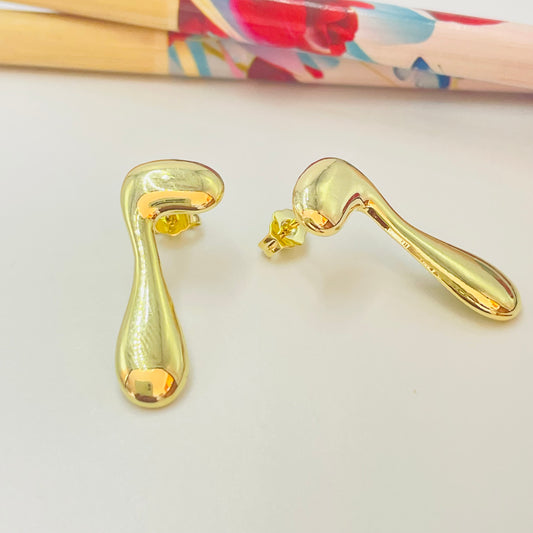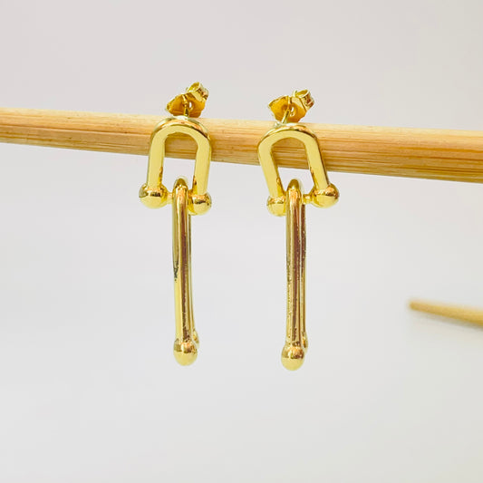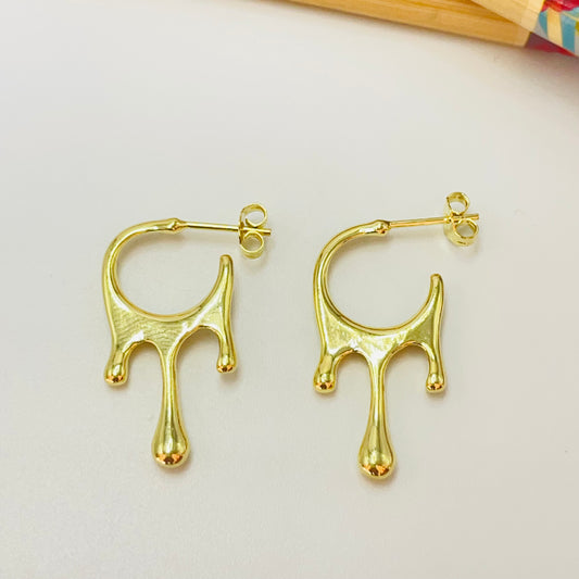 XO489 Aro Argolla Tipo Orgánica con 3 Palitos Diá. 15 mm Largo Total 28 mm Espesor 2 mm Aro Baño Oro