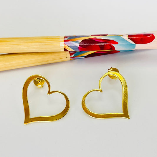 XO477 Aro Corazón irregular borde con rayitas estampadas 20 x 18 mm Espesor 1.2 mm Aro Baño Oro