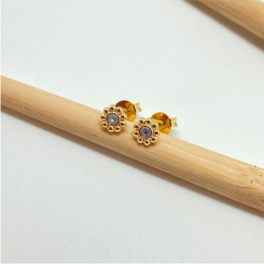 XO264 Aro Punto de Luz borde con mini Bolitas Circón Aguamarina Diá. 5 mm Aro Baño Oro