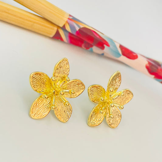 XO468 Aro Flor Pétalos texturados estambre palitos y bolitas 25 mm Espesor 1 mm Aro Baño Oro