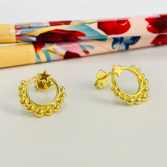 XO383 Aro Argolla frontal bolitas y estrella superior diá. 13 mm Espesor 1.2 mm Aro Baño Oro