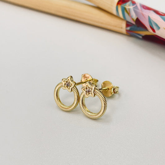 XO366 Aro Estrella con 1 circón 5 mm y argolla texturada Diá. 9.2 mm Tamaño Total 12.2 x 9 .2 mm Aro Baño Oro