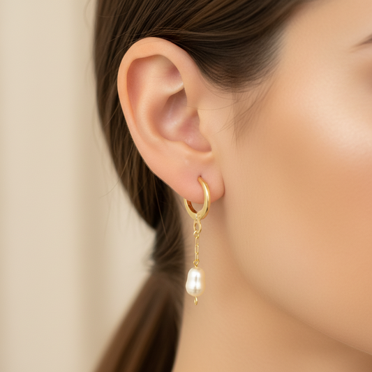 XO562 Aro Argolla con Perla tipo Río de 7x5 mm Largo Total 30 mm Largo cadena 18 mm Aro Baño Oro