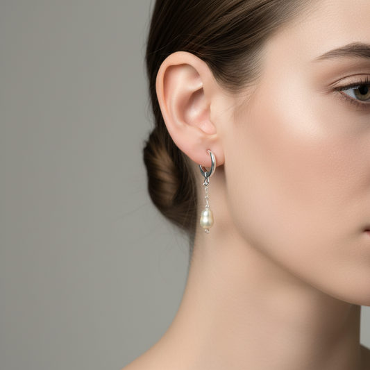 XP562 Aro Argolla con Perla tipo Río de 7x5 mm Largo Total 30 mm Largo cadena 18 mm Aro Baño Plata