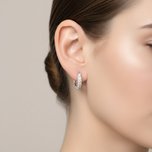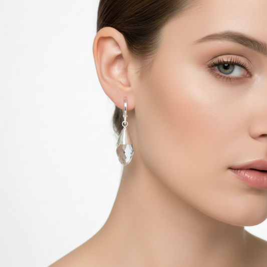XP563 Aro Argolla Cristal Facetado Embarrilado Largo Total 34 mm Ancho 9 mm Largo Cristal 18 mm Aro Baño Plata