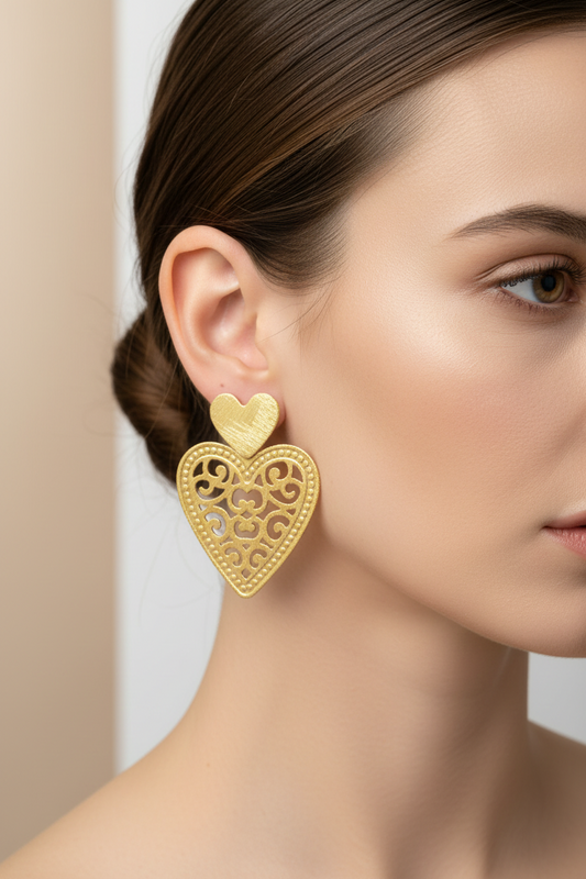 XO568 Aro Corazones Base Corazón 14x15 mm Mandala Corazón Calada 33x33 mm Lijado Aro Baño Oro