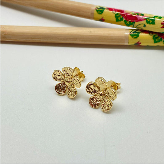 XO252 Aro Flor 5 Pétalos craquelada punto en el centro 13 mm Aro Baño Oro