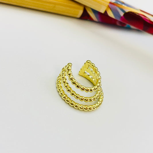XO548 Cuff 3 argollas unidas 15 13 y 11 mm bolitas 1.8 mm Ancho total 7.5 mm Aro Baño Oro