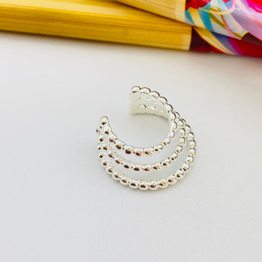 XP548 Cuff 3 argollas unidas 15 13 y 11 mm bolitas 1.8 mm Ancho total 7.5 mm Aro Baño Plata