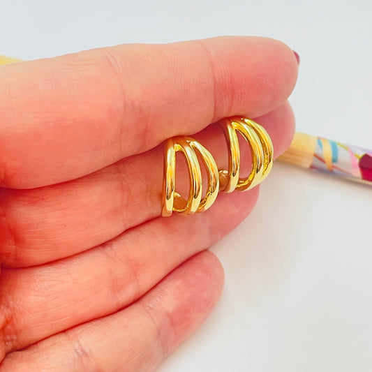 XO489 Aro Argolla Tipo Orgánica con 3 Palitos Diá. 15 mm Largo Total 28 mm Espesor 2 mm Aro Baño Oro