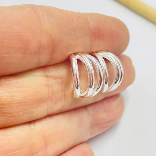XP488 Aro Triple Argollas unidas Diá. 15 mm Ancho mayor 10 mm Espesor argollas 2 mm Aro Baño Plata
