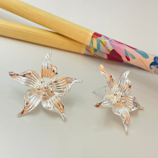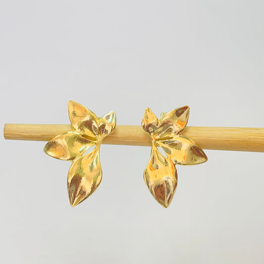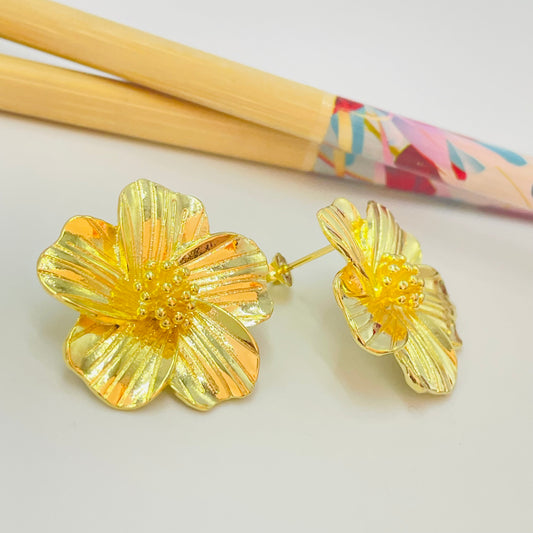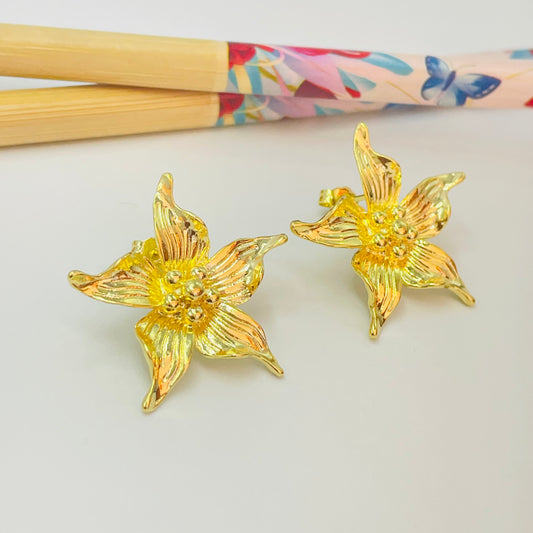 XO466 Aros Flor 5 Pétalos largos 25 x 25 mm Espesor 1.5 mm Aro Baño Oro