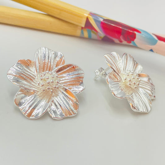 XP467 Aro Flor 5 Pétalos con puntos estampados centro bolitas en relieve 27 mm Espesor 1.2 mm Aro Baño Plata