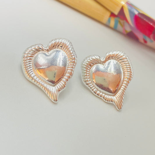 XP477 Aro Corazón irregular borde con rayitas estampadas 20 x 18 mm Espesor 1.2 mm Aro Baño Plata