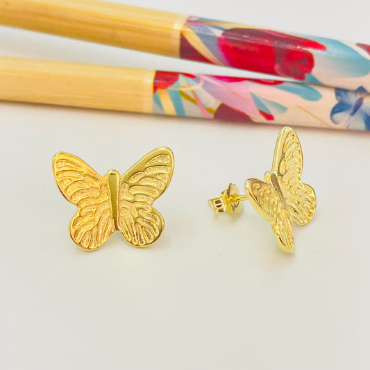 XO472 Aro Mariposa frontal levemente cóncava alitas con rayitas en relieve 18 x 21 mm Espesor 1.2 mm Aro Baño Oro