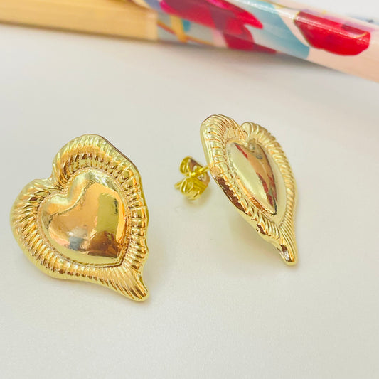 XO477 Aro Corazón irregular borde con rayitas estampadas 20 x 18 mm Espesor 1.2 mm Aro Baño Oro
