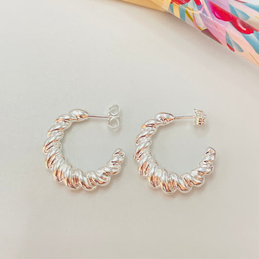 XP471 Aro Argolla Espiral Desigual Diá. 17 mm Ancho de 3 a 6 mm Espesor 4 mm Aro Baño Plata