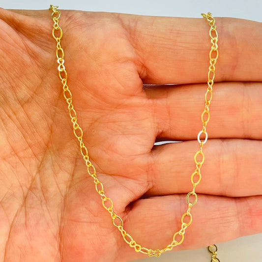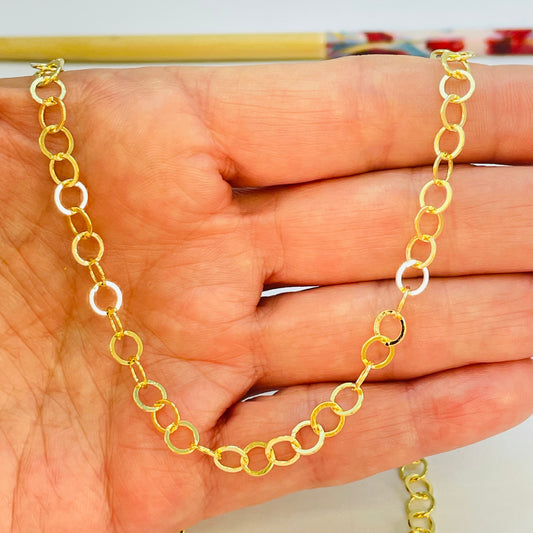 CO227 Cadena Eslabones Alternados Eslabón 4 x 3 mm y 2 mini círculos Largo 43 cm Cadena Terminada Baño Oro
