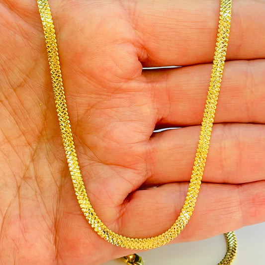 CO225 Cadena Cinta Texturada doble espesor Ancho 3 mm Espesor 1.3 mm Largo 45 cm Cadena Terminada Baño Oro