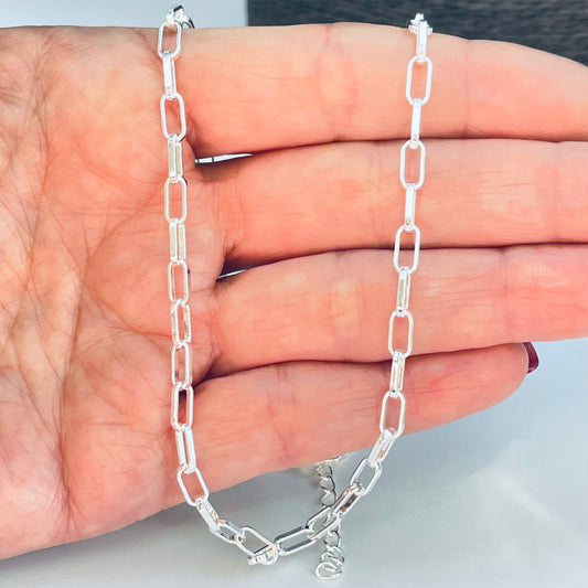 CP228 Cadena tipo Cartier Eslabón 4.8 x 3.8 mm Largo 40 cm más extensor 5 cm Cadena Terminada Baño Plata