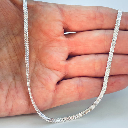 CP225 Cadena Cinta Texturada doble espesor Ancho 3 mm Espesor 1.3 mm Largo 45 cm Cadena Terminada Baño Plata