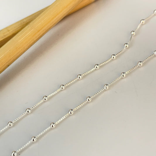 CP202 Cadena Veneciana espesor 0.8 mm y Bolitas 2 mm Largo 40 cm Cadena Terminada Baño Plata