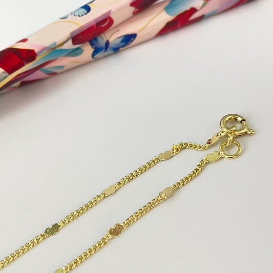 CO204 Collar Cadena Grumet 2 mm y Mini Corazones de 3 mm Largo 40 cm Cadena Terminada Baño Oro