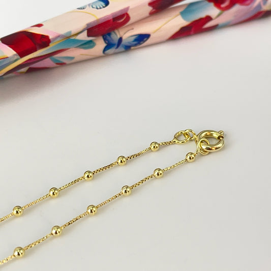 CO202 Cadena Veneciana espesor 0.8 mm y Bolitas 2 mm Largo 40 cm Cadena Terminada Baño Oro