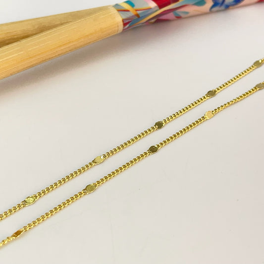 CO205 Cadena Grumet 1 mm y mini Círculos 2 mm 40 cm más extensor 5 cm Cadena Terminada Baño Oro