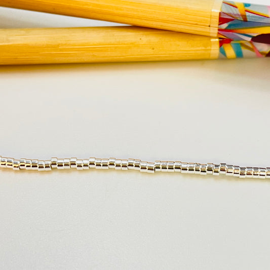 CP167 Collar de Mostacillas Largo 80 cm Cadena Terminada Baño Plata
