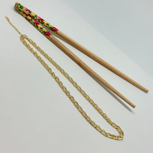CO151 Cadena eslabón 11 x 5 mm Espesor 2 mm Largo 40 cm mas extensor de 5 cm Cadena Terminada Baño Oro