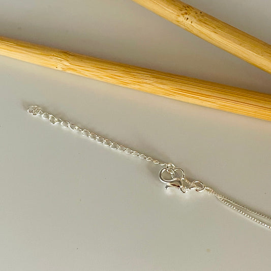 CP134 Cadena Cinta fina Largo 30 cm más extensor de 10 cm Ancho 2 mm Cadena Baño Plata