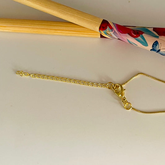 CO134 Cadena Cinta fina Largo 30 cm más extensor de 10 cm Ancho 2 mm Cadena Baño Oro