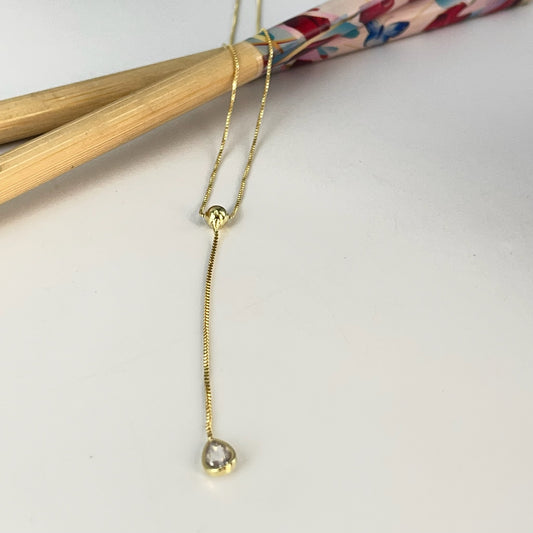 CO203 Collar Cascada Bolita Central 4 mm Colgante Gota Cristal 6 x 5 mm Cadena Veneciana Espesor 0.8 mm 40 cm más extensor 5 cm Largo cascada 5.5 cm Collar Terminado Baño Oro
