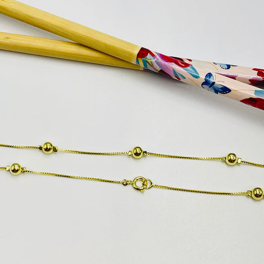 CO212 Collar Bolitas diá. 5 mm Cadena Veneciana espesor 1 mm Largo 60 cm Collar Terminado Baño Oro