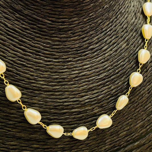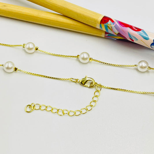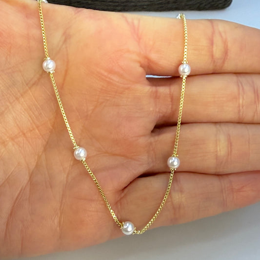 CO211 Collar Perlas diá. 6 mm Cadena Veneciana Espesor 1 mm Largo 40 cm más extensor 5 cm Collar Terminado Baño Oro