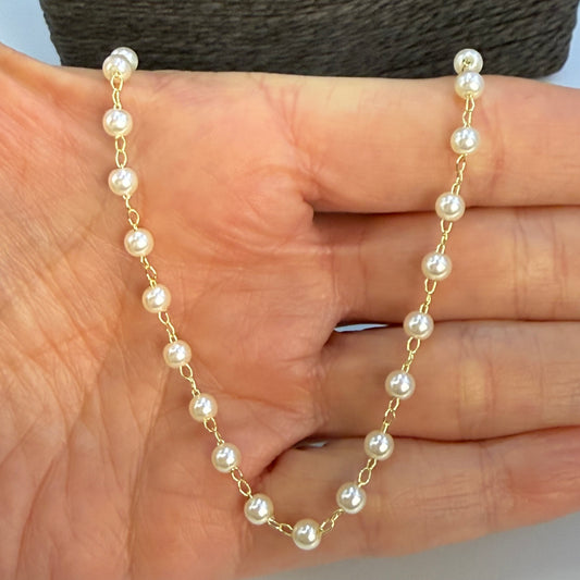 CO232 Collar Chocker Perlas diá. 4 mm Largo 35 cm más extensor 5.5 cm Collar Terminado Baño Oro