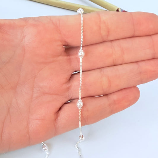 CP231 Collar Perlas diá. 4 mm Cadena Veneciana Espesor 1 mm Largo 50 cm Collar Terminado Baño Plata