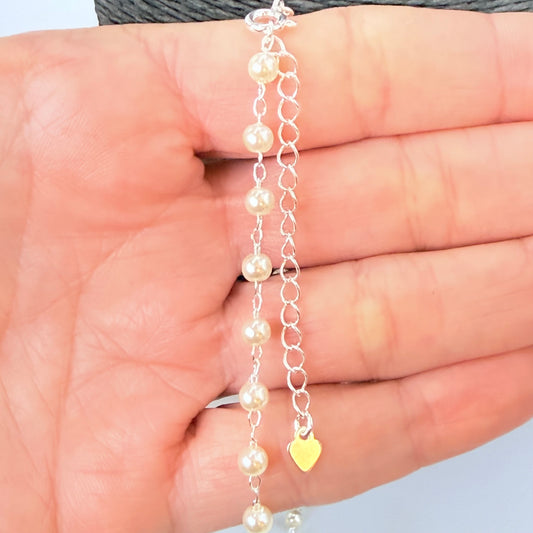 CP220 Collar Chocker Perlas tipo Gota 8 x 6 mm Largo 37 cm más extensor de 6 cm Terminal Corazón Collar Terminado Baño Plata