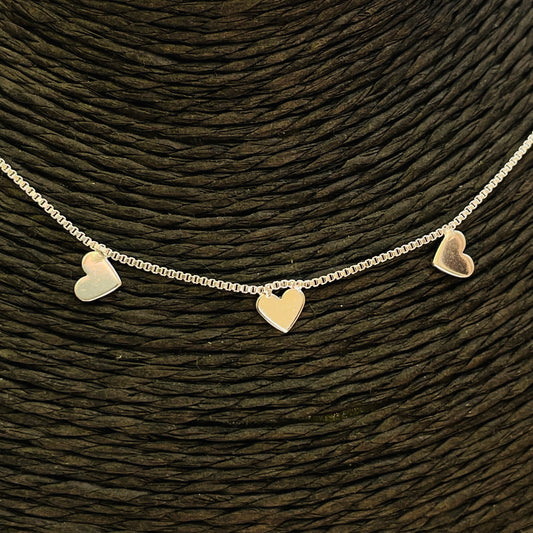 CP218 Collar 7 Mini Corazones 6x6 mm Cadena Veneciana Espesor 1 mm Largo 40 cm más extensor 7 cm con terminal mini circón Collar Terminado Baño Plata