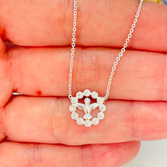 CP219 Collar Espíritu Santo diá. 12 mm mini circones de 2 mm Cadena Candado 40 cm más extensor de 7 cm y terminal mini circon Collar Terminado Baño Plata