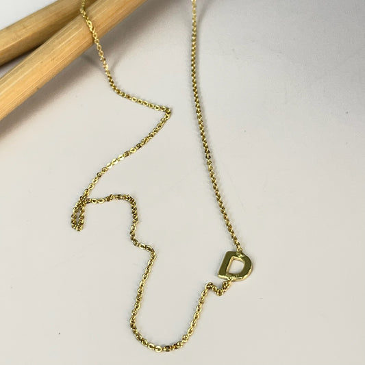 CO193 Collar con Mini Letra 7 mm cadena candado espesor 0.8 mm Largo 40 cm más extensor de 7 mm con terminal mini circón Collar Terminado Baño Oro
