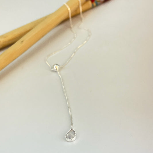 CP203 Collar Cascada Bolita Central 4 mm Colgante Gota Cristal 6 x 5 mm Cadena Veneciana Espesor 0.8 mm 40 cm más extensor 5 cm Largo cascada 5.5 cm Collar Terminado Baño Plata