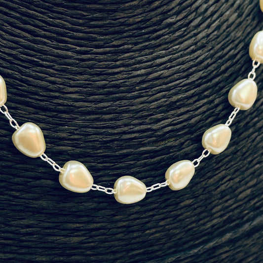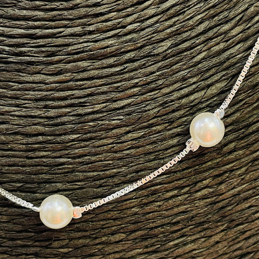 CP211 Collar Perlas diá. 6 mm Cadena Veneciana Espesor 1 mm Largo 40 cm más extensor 5 cm Collar Terminado Baño Plata
