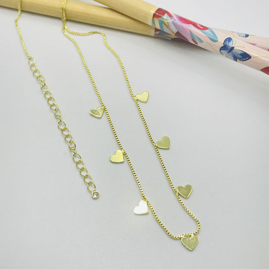 CO218 Collar 7 Mini Corazones 6x6 mm Cadena Veneciana Espesor 1 mm Largo 40 cm más extensor 7 cm con terminal mini circón Collar Terminado Baño Oro