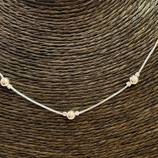 CP212 Collar Bolitas diá. 5 mm Cadena Veneciana espesor 1 mm Largo 60 cm Collar Terminado Baño Plata